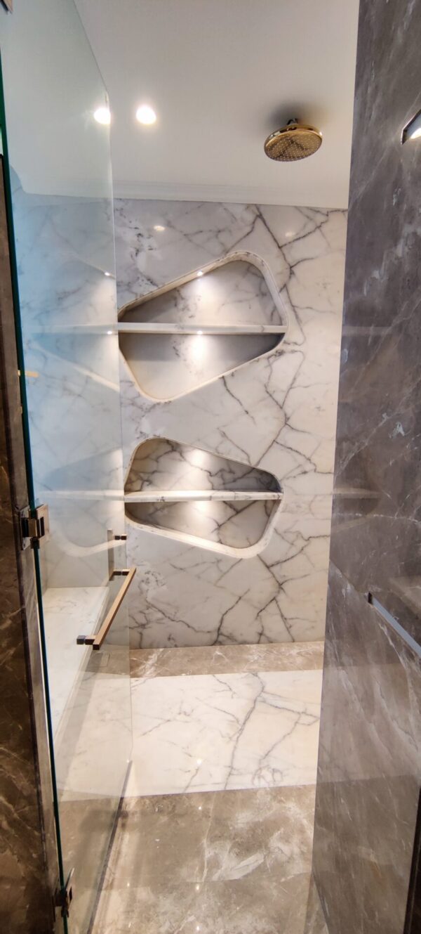 Georgian White Marble is a timeless classic white marble quarried from Taurus Alps Mountains in Turkey specifically know for its purity and quality. Sparkling white crystals create dazzling reflections, while very faint and subtle veins of diffused grey cut across the surface, making it a strong choice for refined tastes. This is a gorgeous and luxurious white marble that can enliven any dull space. Our doctors of nature with over six decades of experience, have performed extensive tests on the marble block; outcome of which is the marble is hard, strong, completely crack-free, and less porous; therefore with standardized thickness and unique craftsmanship, it can be processed into textures as Sawn Cut, Sanded, Rock-faced, Sandblasted, Tumbled and so on. This marble will show its entire splendor even with the high-gloss polish. This stone is especially good for Countertops, monuments, mosaic, exterior – interior wall and floor applications, fountains, pool and wall capping, stairs, window sills and other design projects. Hence perfect for typical Indian homes, as stains can be wiped off easily without any stress and hassle.