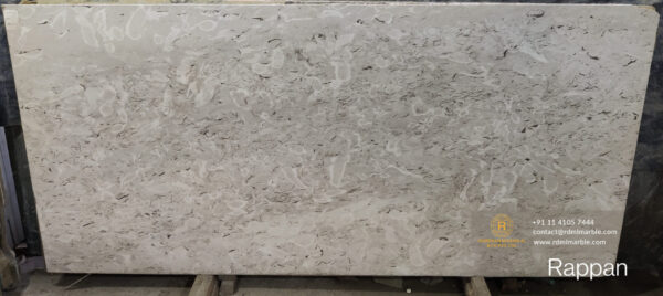 The Rappan Classico marble is a rare and exceptional piece of natural stone, sourced from the prestigious quarries of the Apuan Alps in Italy. Fossilised textures of black and white on a cool grey color base, give the stone a unique timeless look that can enhance the beauty and sophistication of luxurious spaces. This marble is known for its exceptional durability and resistance to wear and tear, making it ideal for high-traffic areas such as flooring, countertops, and wall cladding.